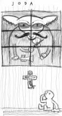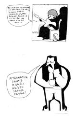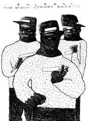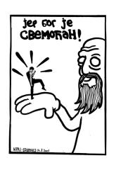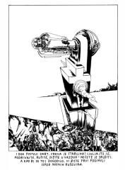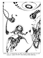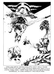 prvo izdanje studiostrip-a je diglo odmah kler na noge. kler smrdi. prvo su nam se obratili zvanicnim pismom u zelenoj koverti, zatim depesom i na kraju su nam poslali fratra da nas demobilise, a evo i sta su kosmoplovci odgovorili fratru: 'nikad nismo probali ljudsko meso, ali nikad nije kasno...'