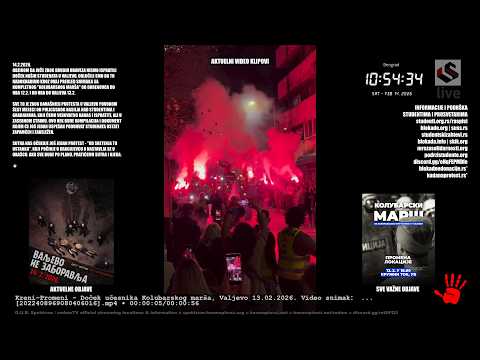 STUDENTSKI KANAL BLOKADA INFO PRENOSI DOGAĐAJ UŽIVO, KOJI I MI PRENOSIMO, I ZAJEDNO SA NJIMA PRATIMO PROTEST I ŠETNJU TOKOM DANA, UZ AKTUELNE VIDEO KLIPOVE I OBJAVE TOKOM CELOG STRIMA.